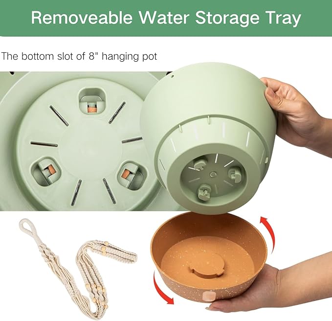 - SELF WATERING & VISIBLE WATER LEVEL: Self watering hanging pot is ingeniously designed, tightly connecting the tray and the pot body, turning the tray into a water reservoir with visible holes, allowing you to clearly see the water level (If you water too much, water will flow out from the edge of the tray to prevent the plants from being submerged)