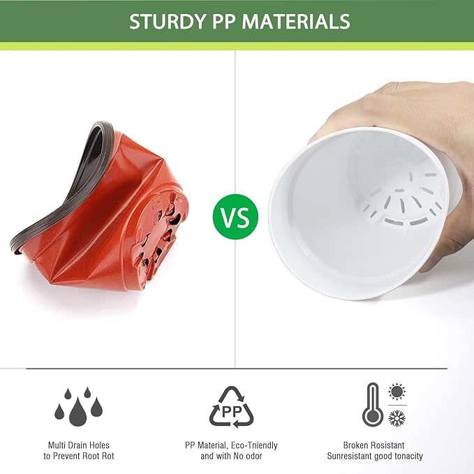 - 【PLANTER SPECIFICATIONS】Plant nursery pots seed starting pots containers, the package includes 24 pack of 4 inch pots for plants, each with a tray, and it has a capacity of 1 pint. Plastic plant pots with drainage holes and saucers are more reassuring than glass or ceramic, they are lightweight and not easy to break.