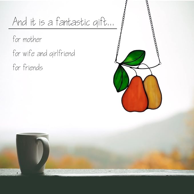 - This Orange pear window hanging made of stained glass can be used as a beautiful ornament to decorate the room and garden,or you can give it to friends and family as a gift
