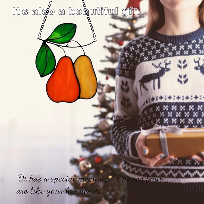 Stained Glass Window Hanging Orange pear Sun Catcher Home Decor Gifts for Christmas to Family and Friends