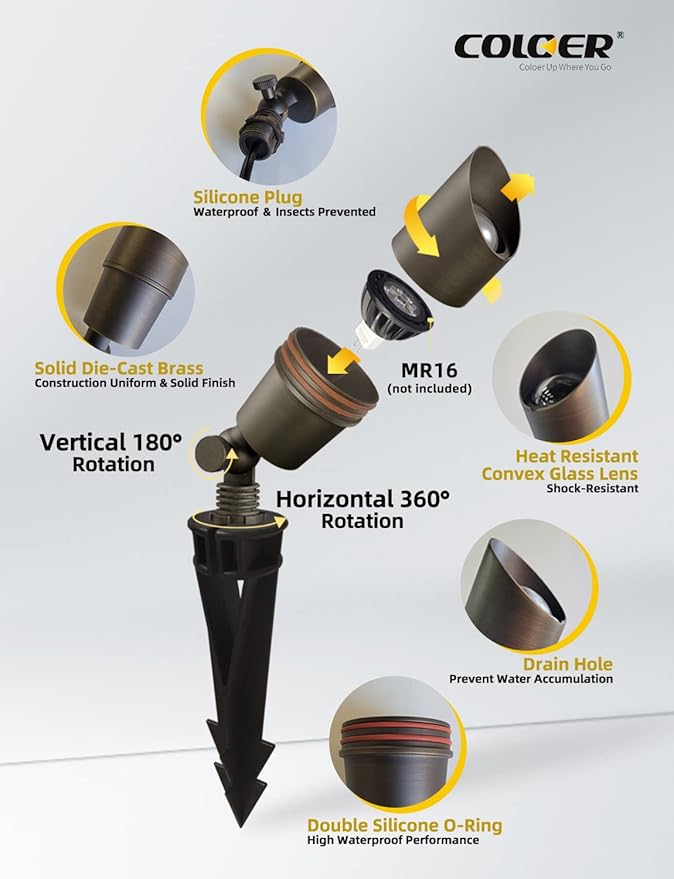 - Lifetime Warranty: The COLOER landscape spotlight uses a design with separate light fixture and bulb, which offers a longer lifespan compared to the non-detachable integrated design. You can replace the bulb without having to replace the entire fixture just because the bulb is broken. We offer a lifetime warranty on the brass light fixture. We stand behind our product with our top-rated customer service. Please don't hesitate to contact us if you have any issues.