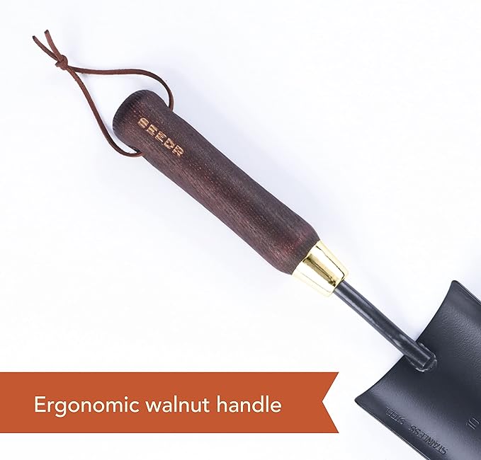 - MADE TO MATCH YOUR GARDEN: With black carbon steel and walnut-stained wooden handles, this garden tool set blends modern elegance with rustic function to compliment the beauty you create in your yard.
