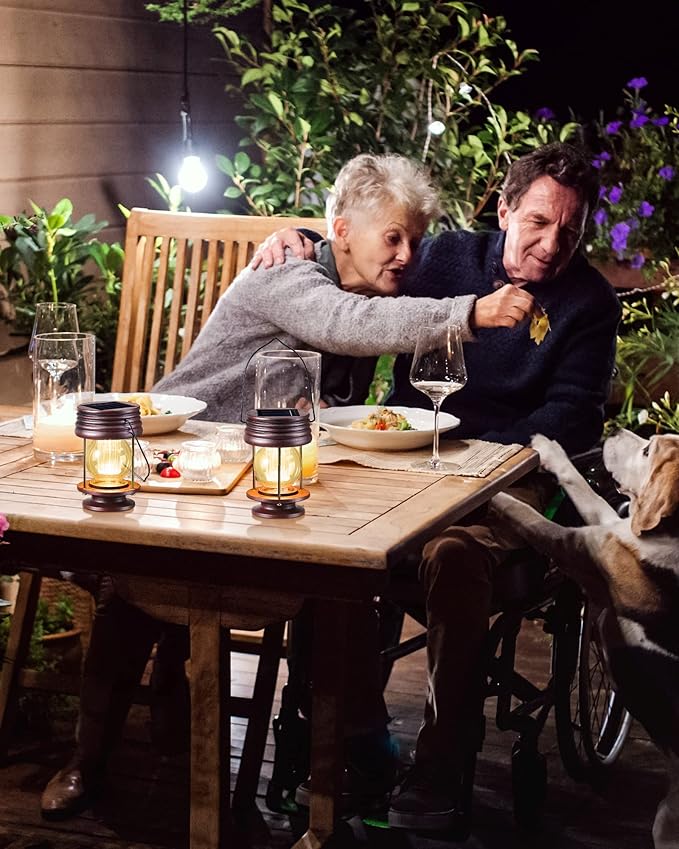 - Two Installation Ways: solar lanterns for patio are equipped with a strong handle, and can be easily hung on a wall or tree, or placed on flat surfaces such as tables, shelves, porches, patios and pergolas, you can charge the solar light outdoors and use it indoors