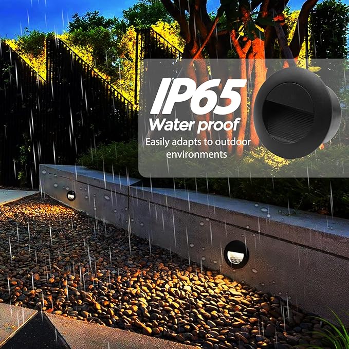 - Good Quality: Black shell, warm white 3000K, aluminum corner staircase light step light, IP65 waterproof, suitable for indoor and outdoor; IP65 can prevent the splashing water, but cannot be installed directly under water