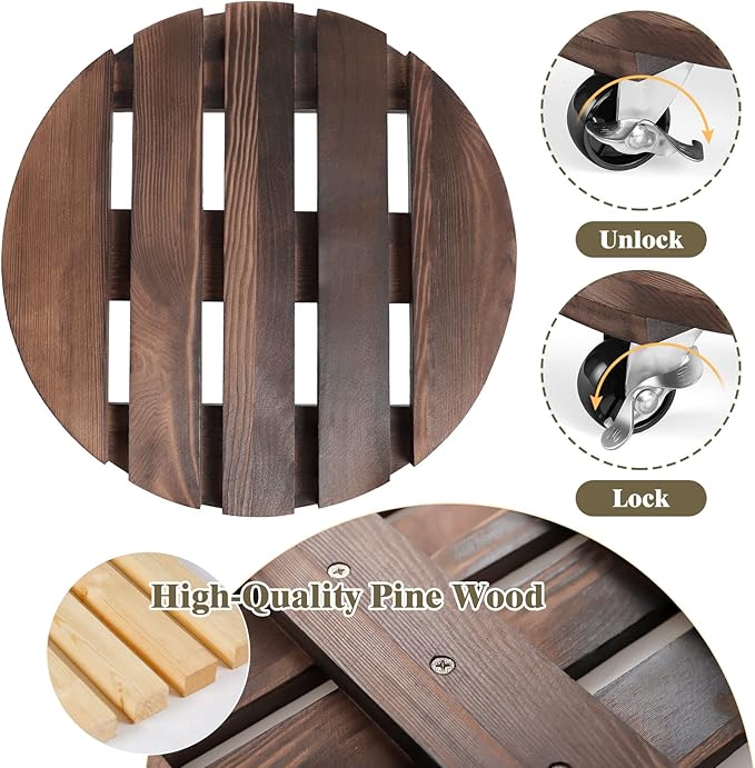 - 【Premium Wood Plant Dolly】12 inch rolling plant stand with casters heavy duty is made of pine wood, which is resistant to corrosion, sturdy, not easy to break, and can withstand various outdoor weather for a long time