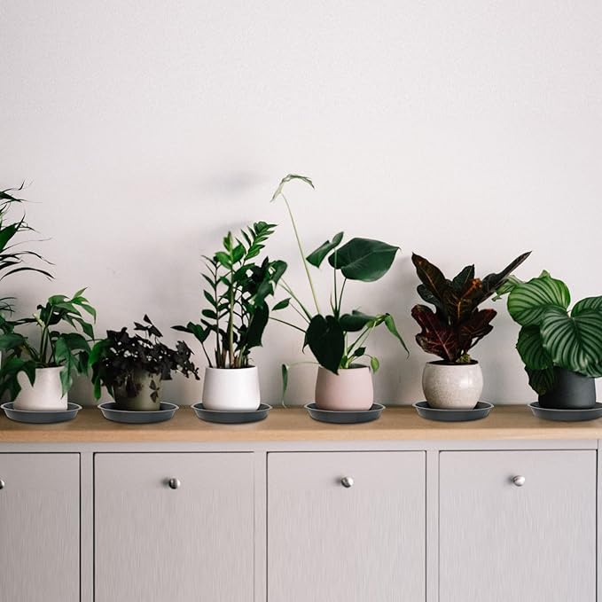 6 Pack Plant Saucer 4 6 8 10 12 14 16 18 20 22 Inch Plastic Plant Tray, Sturdy and Durable Flower Pot Container Accessories Plant Pot Saucers for Indoor and Outdoor (4 Inch, Gray)