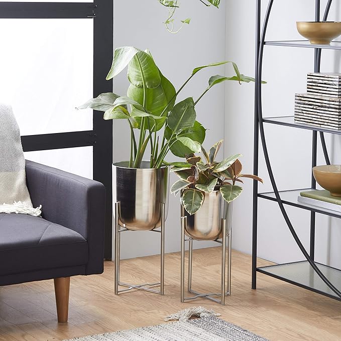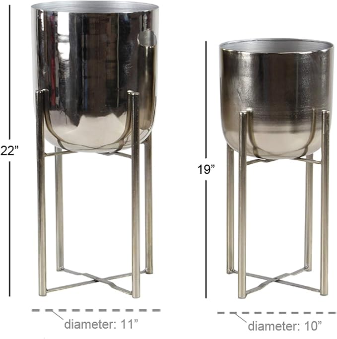 Deco 79 Glam Metal Planters with Stands, Set of 2, 19", 22" H, Silver (Pack of 3, 6 Count Total)
