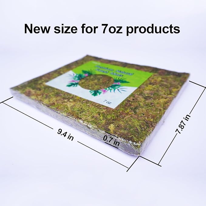 - Package Include: You will receive a 7 oz weight of dry and clean forest moss, it's a 9.4 in x 7.87 in x 0.7 in small brick, there is much that is packed into the little package. It is made of 7.6 quarts of dried and fluffy forest moss that have been manually compressed into small bricks.