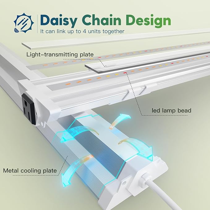 - Sunlike Spectrum: Emulates natural light, ideal for all stages of plant development from seeding to growth and bloom. Add red spectrum to promote photosynthesis.