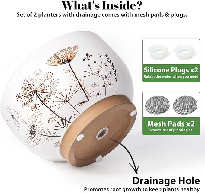 - Drainage Hole & Plug & Mesh Pad - Each planter has a drainage hole, putting the mesh pad at the bottom will isolate the water. The silicone plug could retain the water. (Plants are NOT included.)