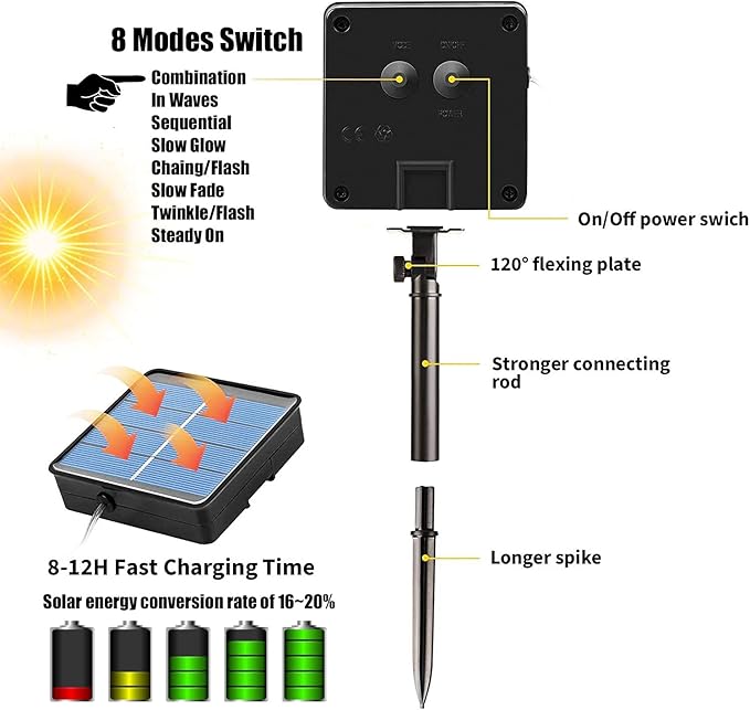 - 💡【Up to 19% High Energy Conversion Rate】Our solar rope lights are equipped with 100 low-heat LED chips, achieving a high energy conversion rate of up to 19%, compared to the industry standard of 13%. These lights are not only environmentally friendly, harnessing endless energy from the sun, but also durable and safe to use. The LEDs will not overheat even after hours of usage.