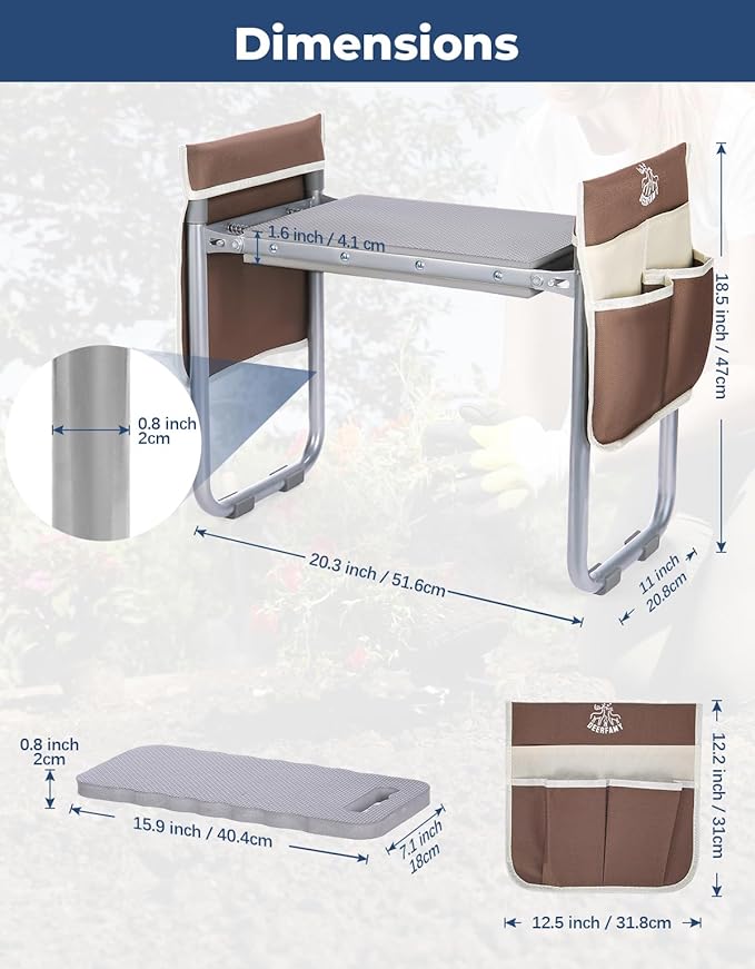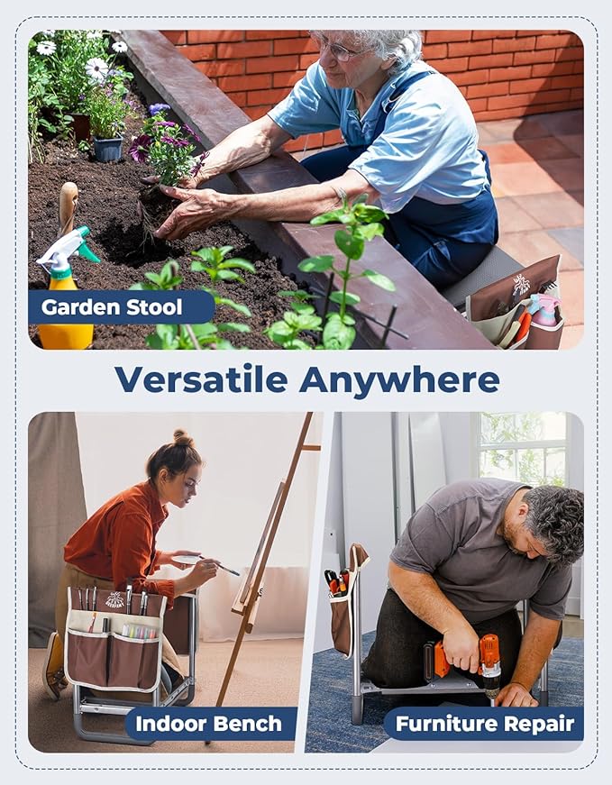 - ๐๐ก๐๐๐ง๐ก๐ฎ-๐๐ง๐๐๐ฃ๐๐ก๐ฎ ๐ฟ๐๐จ๐๐๐ฃ: An extra EVA kneeling pad is provided to ensure blood circulation and reduce pain in the knee when kneeling. Armrests on both sides ensure that the elderly can stand up easier after long hours of gardening, making it an excellent gift for grandparents.
