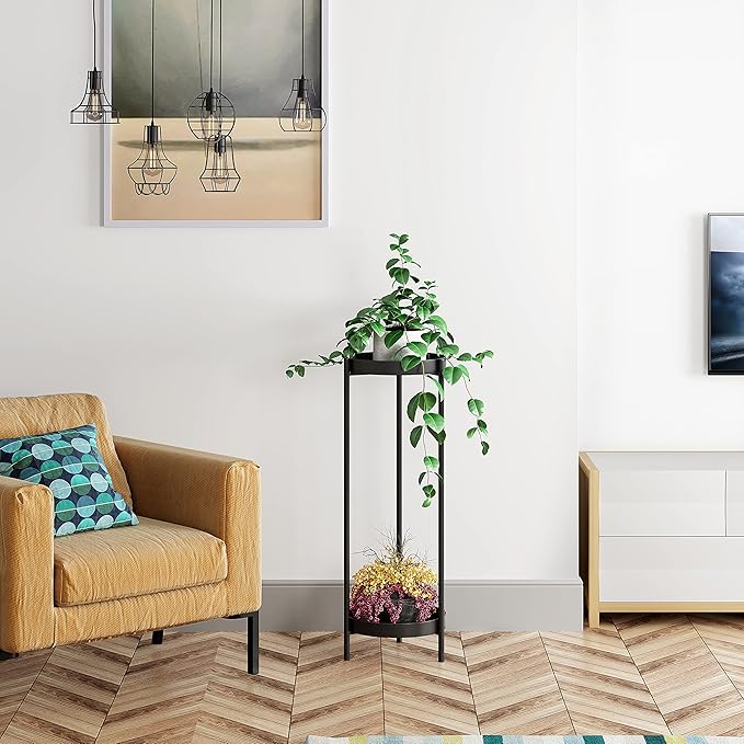 2 Tier Metal Flower Plants Holder, with 2 Removable Display for Indoor or Outdoor,Pot Plant Planter Display (Black 2P)