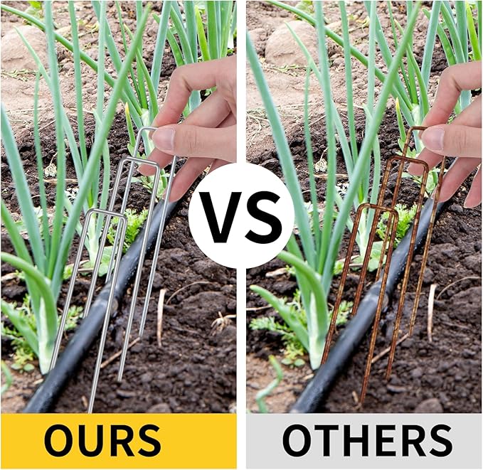 - Package contains: 420pcs 6 inches galvanized rust-proof u-shaped garden stakes in a Firm and sturdy box.