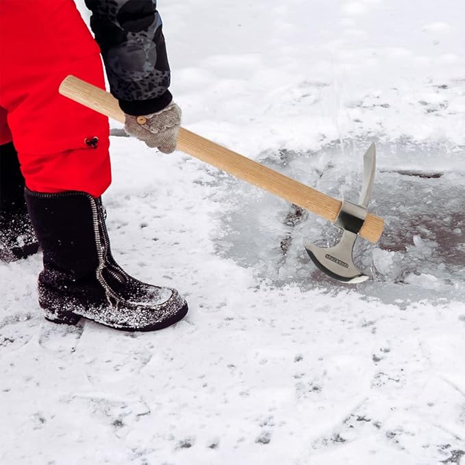 - Strong and Sharp Axes - This pick mattock head is made of high quality stainless steel. The hatchets blade is thin, the steel head of the axe widens upward in a fan shape from the centre, this shape of the axe head allows it to easily split the firewood in half.