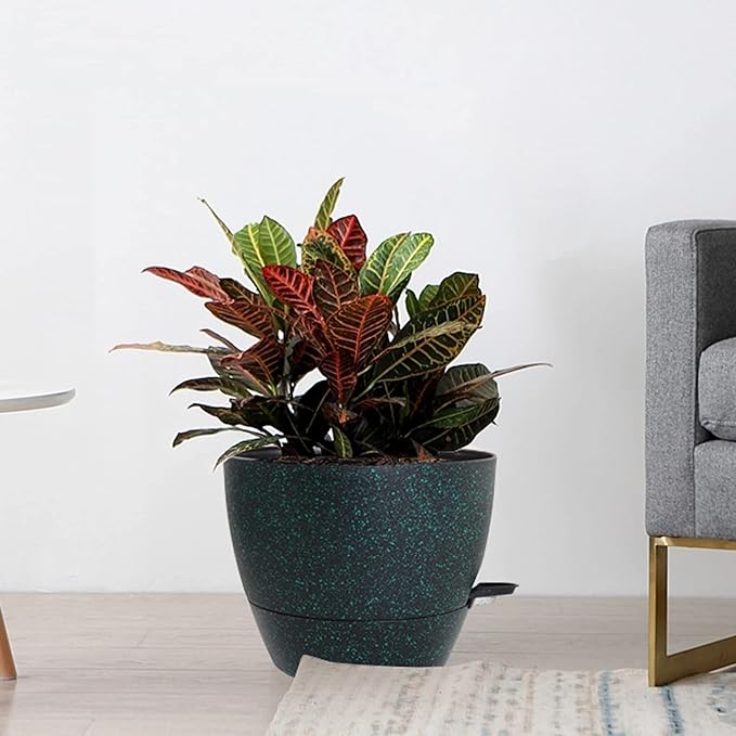 10/9/8 inch Self Watering Pots, Set of 3 Plastic Planters with Mesh Drainage Holes and Deep Reservoir for Indoor Outdoor Garden Plants and Flowers, Black with Green Speckles
