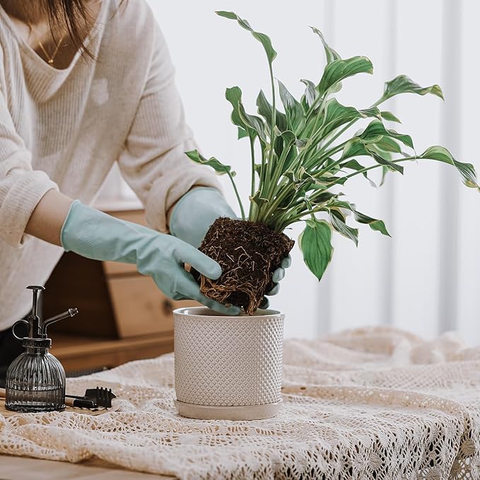 - Outstanding Design: The creamy white color of the plant pot, with its beaded embossed surface, provides a sophisticated and rustic beauty; the embossed not only provides a non-slip surface, but also adds depth to the rich, making it an striking focal point in any setting
