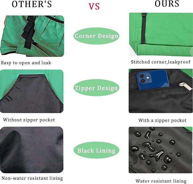 - Waterproof Liner: The harvest apron is crafted with heavy duty waterproof liner, it can provide better protection for your clothes from getting dirty, and preventing you from getting wet while gardening