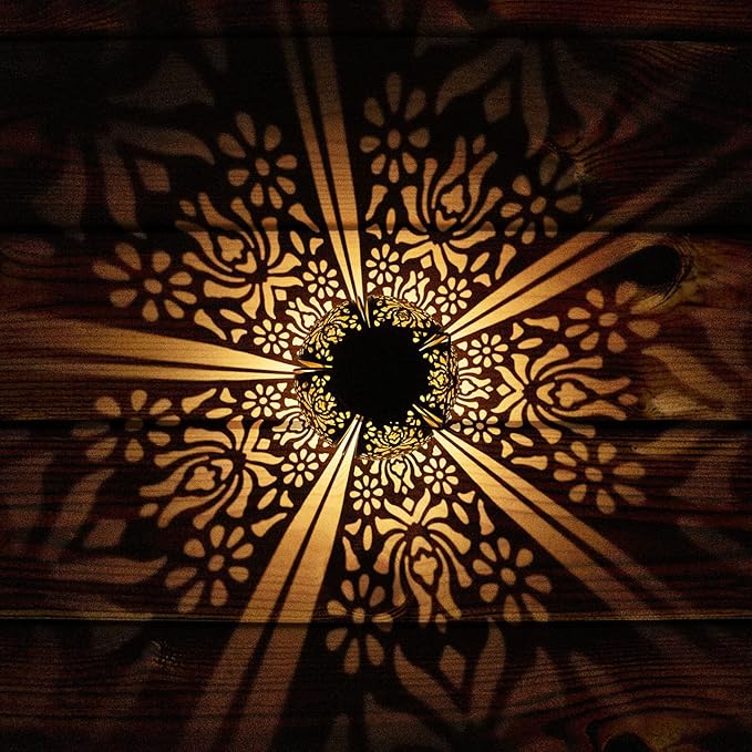 - 【TWO PLACEMENT WAYS】 -- Hanging solar lanterns, can be hung on porch, trees, and pergolas with the shepherd; Solar table lamps, rested on a tabletop, ledge, beach, pavilion. Warm Light filtered through the lampshade and cast a beautiful pattern on the ground. Soft light creates a romantic atmosphere for your garden or pavilion.