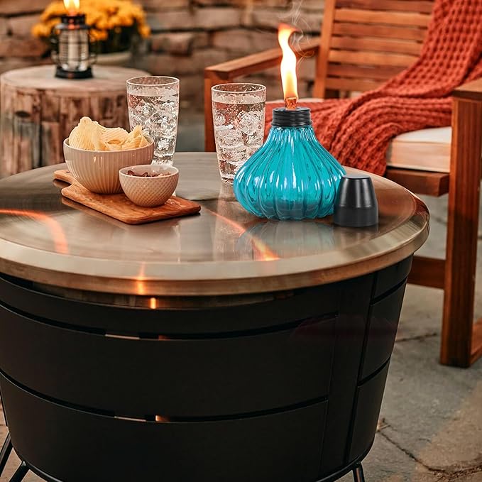 - LIGHT UP WITH EASE: Our offered tabletop table torches feature thick glass, high quality fiberglass wicks, and snuffer caps. For best burn, fill the canister with fuel, insert the wick so it's no more than ½" above the canister, and allow it to saturate for 10-15 minutes. These tips will ensure that the wick will last the lifetime of your torch.
