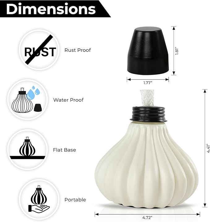- LIGHT UP WITH EASE: Our offered tabletop table torches feature thick ceramic, high quality fiberglass wicks, and snuffer caps. For best burn, fill the canister with fuel, insert the wick so it's no more than ½" above the canister, and allow it to saturate for 10-15 minutes. These tips will ensure that the wick will last the lifetime of your torch.