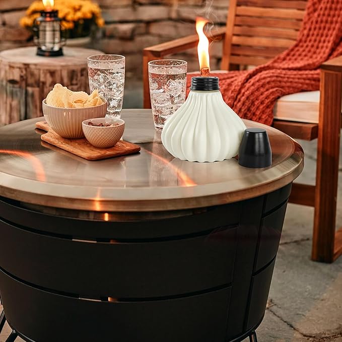 - EASY TO REFILL & USE: Just open the top cap of the table torches to replenish the torch oil every time you need a refill. Besides, you can use the snuffer cap to extinguish the torch's flame and protect the wick after use. When not in use, these table torches are perfect for decorations during outdoor gatherings, camping, etc.
