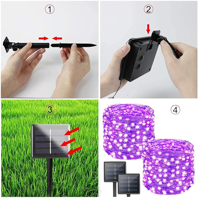 - [8 Lighting Modes & Memory Function]: These purple solar lights feature 8 lighting modes including flashing, steady-on, and slow fade—great for Halloween parties or ambient garden lighting. Built-in memory saves your last mode setting, no need to reset every time.