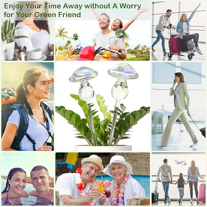 - 🍄 Automatic Plant Water Bulbs: When you are on a business or outdoor trip, self- watering system can help water your potted plants for up to 1-2 weeks. You get rid of the worry of leaving your plants unattended.