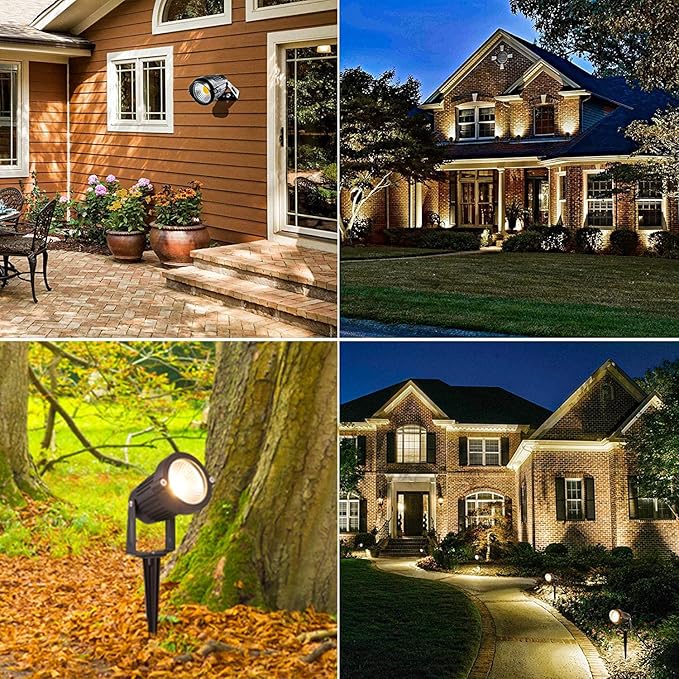 - 【270°Adjustable Head & Widely Use】90° Beam Angle, 270 degree adjustable head offers best lights for the walls,trees,flags &fences; Widely used for house, garden,tree patio path,driveway and outdoor decoration.