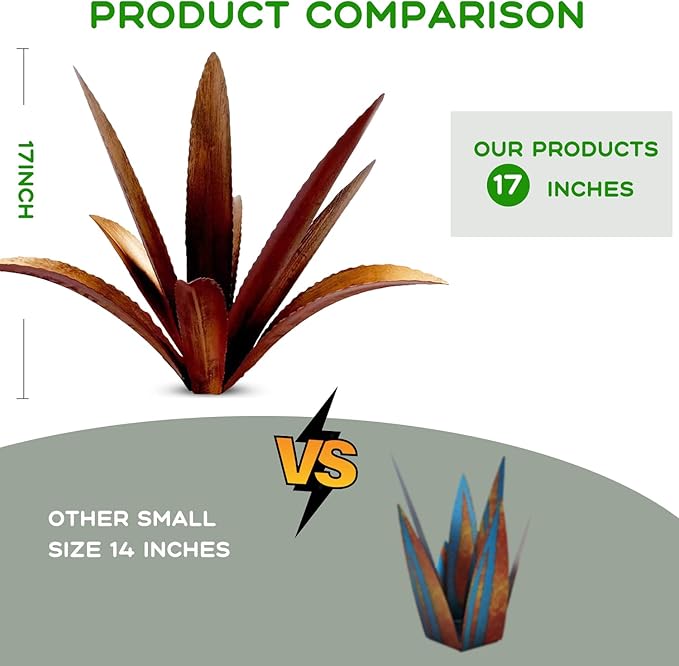 - 【Eternal metal agave】This is a rust-style metallic agave, made from metal and painted with blue high lights in contrast with its rusty steel style finish creates a very unique juxtaposition in the spring you will find a variety of beautiful and lush foliage unique to the Golden State.