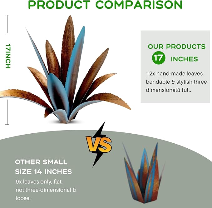 - 【Eternal metal agave】This is a rust-style metallic agave, made from metal and painted with blue high lights in contrast with its rusty steel style finish creates a very unique juxtaposition in the spring you will find a variety of beautiful and lush foliage unique to the Golden State.