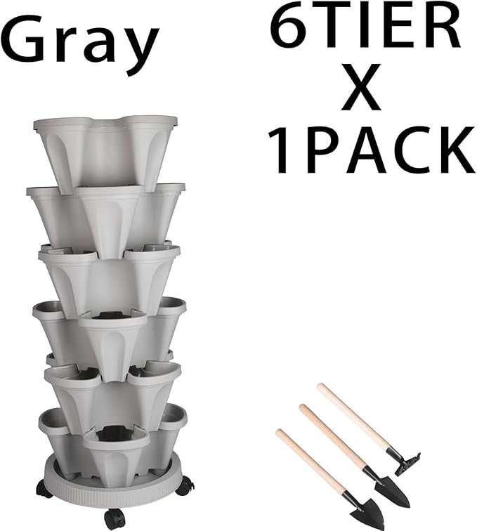 Vertical Planter 6 Tier Stackable Planters Garden Planters Strawberry Herb Flower and Vegetable Planter Indoor Outdoor Gardening Pots with Removable Wheels and Tools