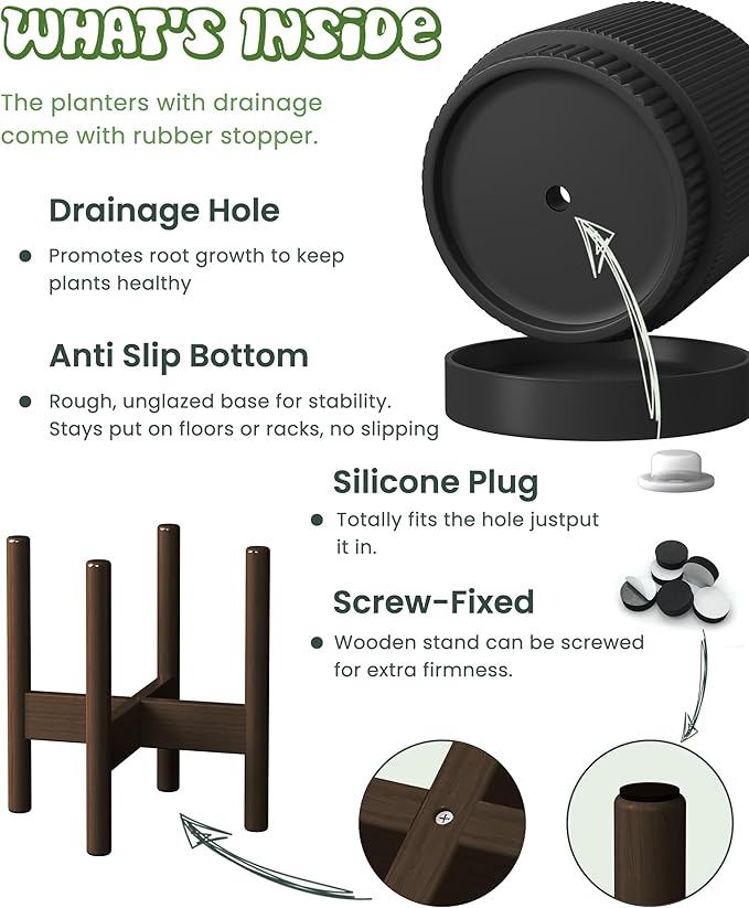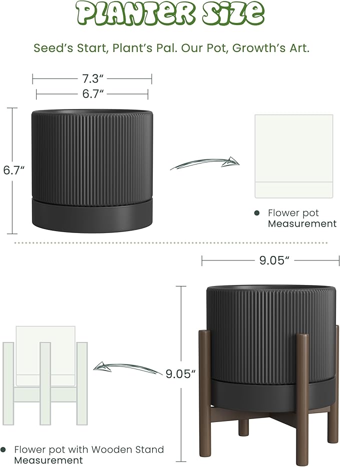 - 【Package Includes】 - Ceramic planter with drainage hole, ceramic saucer, rubber plug, drainage net, beech stand included. Each planter set is well packaged with thick foam to prevent damage during transportation.(Plant not included)