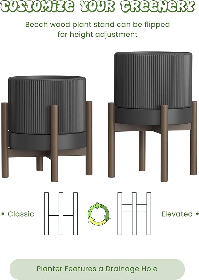 - 【Planter with Stand】 - Not only will it hold up your favourite plant pot, the plant stand will also liven up your house! Made of high quality beech materials, no tool is needed, just a easy splicing to get a stable stand.