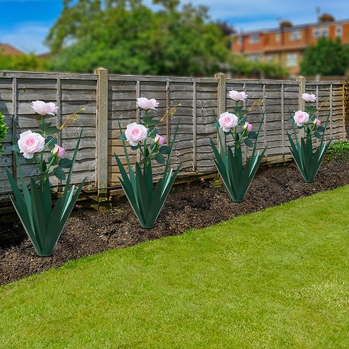 - Both stem and leaves are supported by wire for superior flexibility and durability. These flower bed decorations will bring you outdoor decorating solutions with solar garden lights. Suitable for planting near trees, flower beds, fences, cemeteries, graves and walkways.