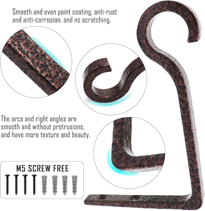 - 【EASY TO INSTALL】This package includes 2 plant hooks, 4 screws and 4 wall anchors. Each screw is a standard M5 screw, 1.2 inches long. All you have to do is screw the screws into the wooden fence posts, deck posts and even the interior walls. It looks great in a variety of different environments.