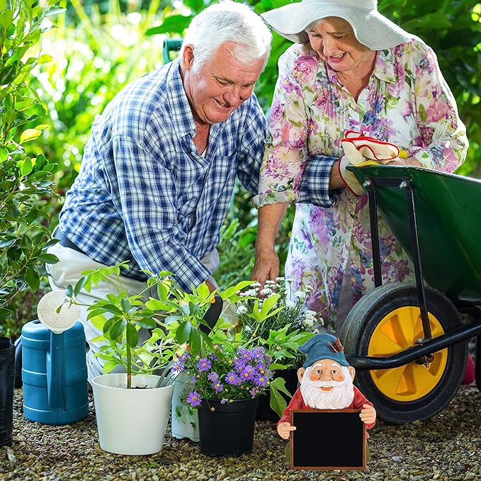 - This Gnome is just like a funny chalkboard sign. You can write anything there, a joke or a reminder, but you will definitely pay attention to this sign