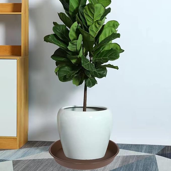 - 【PlANT SAUCER USE】These 25 26 inch plant saucers catches water overflow from flower pots and keeps your furniture and stains free. No fear of leakage from flower pots. Dark brown appearance will not affect any color matching with planters.