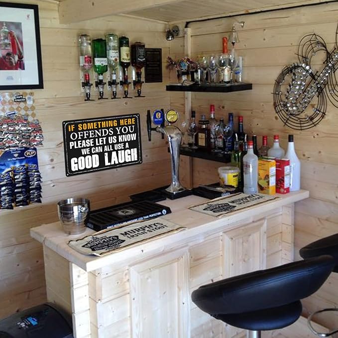 Funny Bar Sign Vintage Metal Tin Signs Man Cave Decor Bar Signs For Home Bar Garage Accessories For Men If Something Here Offends You Please Let Us Know We Can All Use A Good Laugh Sign Kitchen Signs