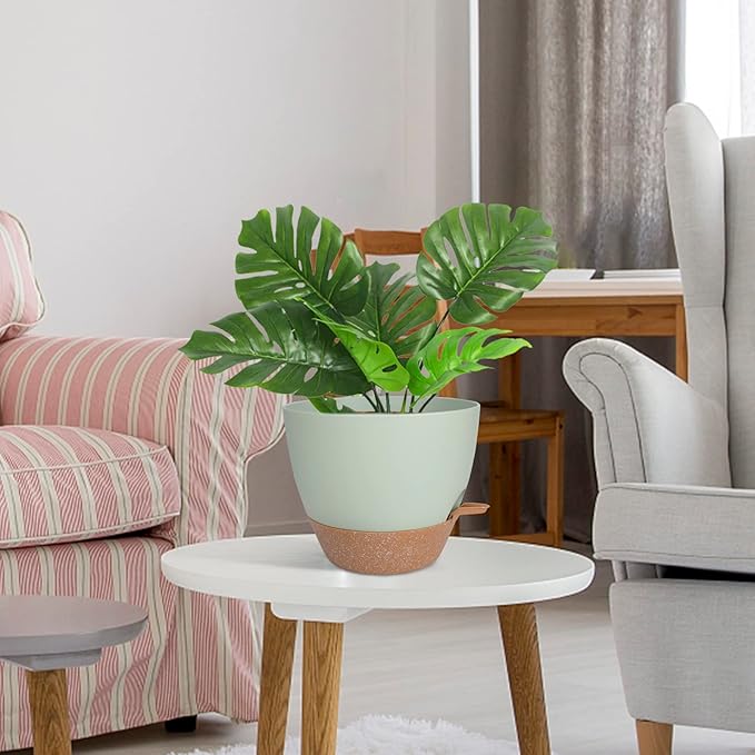 Planters for Indoor Plants, 10/9/8 Inch Self Watering Plant Pots with Drainage Hole, Plastic Planters Flower Pots for Indoor Outdoor Plants (Green)