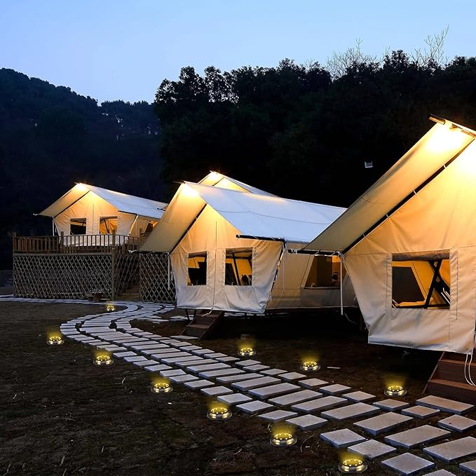 - IP65 Class Durable Design & Waterproof - Solar disk lights outdoor Built-in External Waterproof Switch. Advanced materials and high-quality PC lampshade Have high light transmittance, make the optical output effect of the disc more texture and brighter. IP65 waterproof design has been adopted, so as to work normally under various harsh environments. Don't worry about Heavy rain, snow, frost or sleet.
