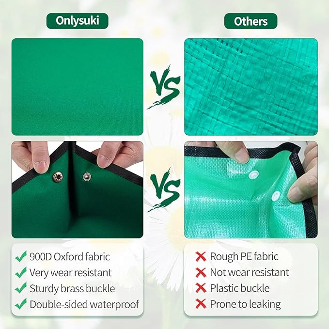 - ✅ GREAT IDEAS: The copper buckles on the 4 corners are very useful to prevent water and dirt from spilling and avoid staining the floor or tabletop. Cleanup is a breeze with this repotting mat! No more putting off needed plant care because of messes on the kitchen counters and floors! Great concept!