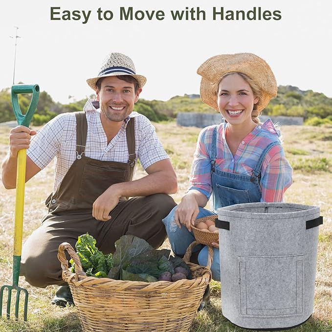 • [Breathable & Durable Material] Garden Planting Growing Bag Made of breathable & durable non-woven fabric, Thickened Non-woven Fabric plant grow bags which is heavy duty felt, planting bags can ensure rapid drainage and provide an ideal growth environment for plants' moisture, nutrition and temperature.Reinforced handles can bear more weight and ensure that they can support a full bag of soil.