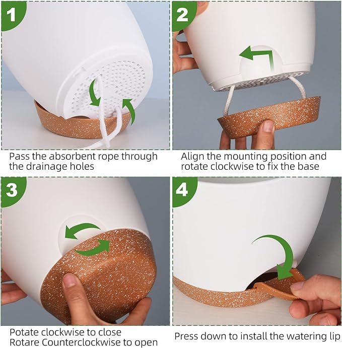 - [Drainage Holes] The flower pots feature a unique drainage hole design at the bottom, which effectively drains excess water and prevents plants from being overwatered. The soil is separated from the water level, and water is introduced through a cotton rope hole to keep the soil moist and healthy plant growth.