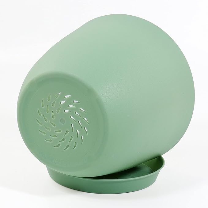 - [Modern Matte Exterior Finish Easy to Clean] These plastic plant pots are made by PP materials. Modern matte exterior finish are very elegant and can be used for vinyl printing. These pots are easy to clean and get clean of dirty easily on the outside, it's not a stained looking mess. The color and shape of plant’s foliage is highlighted by the minimalist round pot, that will pay more attention to the plants and flowers. It doesn't distract from what's inside.