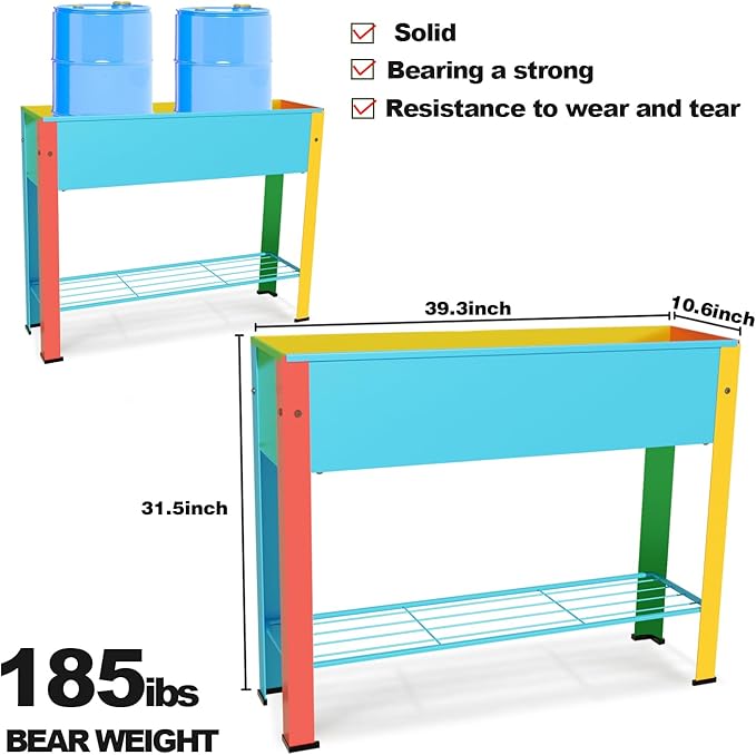 aboxoo Colorful Large Planter Raised Beds with Legs Outdoor Metal Planter Box on Wheels Elevated Garden Bed for Vegetables Flower Herb Patio