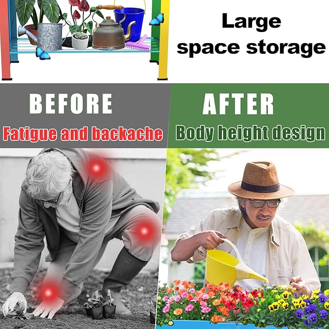 - Convenient Design: Elevated garden bed is high enough to avoid bending over and it is easy to plant without lifting.