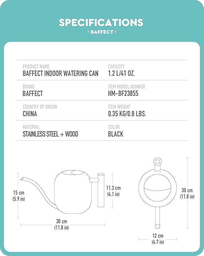 - Ideal capacity - The capacity of Baffect Indoor Watering Can is 1.2L/41oz, making it ideal for watering small houseplants. With its ideal capacity, this indoor houseplant watering can allows you to water multiple small bonsai without frequent refilling.