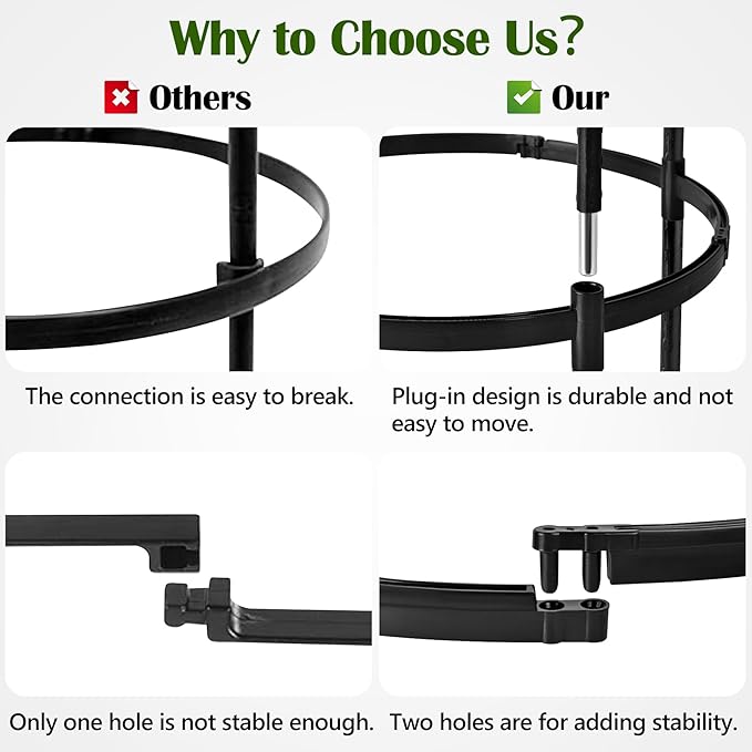 - 【Anti-rust Material】Each plant stake is made of Steel pipe with plastic coated to prevent internal steel tubes from rusting. Resistant to sun damage and fading, gentle on plant stems. Durable plastic support rings are adjustable to help meet your plant's specific support needs