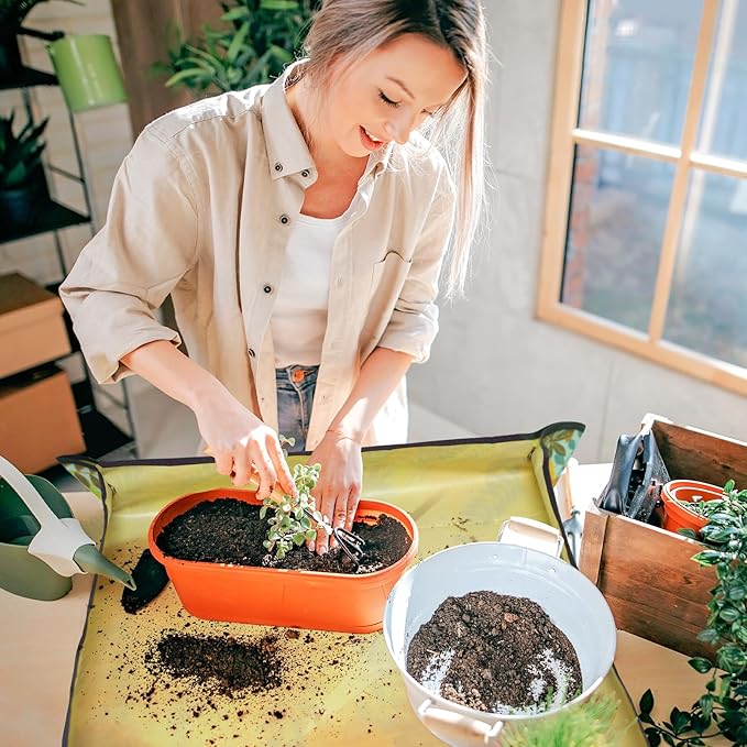 - Perfect for Plant Lovers:Our potting mat for indoor plants is 29.5 x 29.5 inches inches, enough to keep your plants indoors. You don't have to replant in the heat of the garage or outdoors, but can grow and prune houseplants in the bright comfort of your kitchen or living room